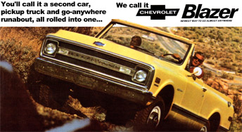 Deluxe equipped trucks had optional upper and lower trim along side of body. Custom equipped trucks had black banded lower trim. CST equipped trucks had woodgrain banded lower trim. First year for foot operated parking brake. First year for the Blazer.