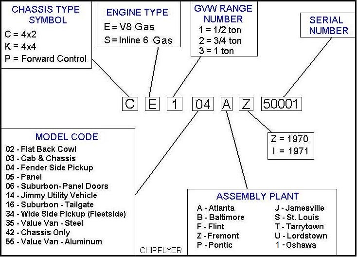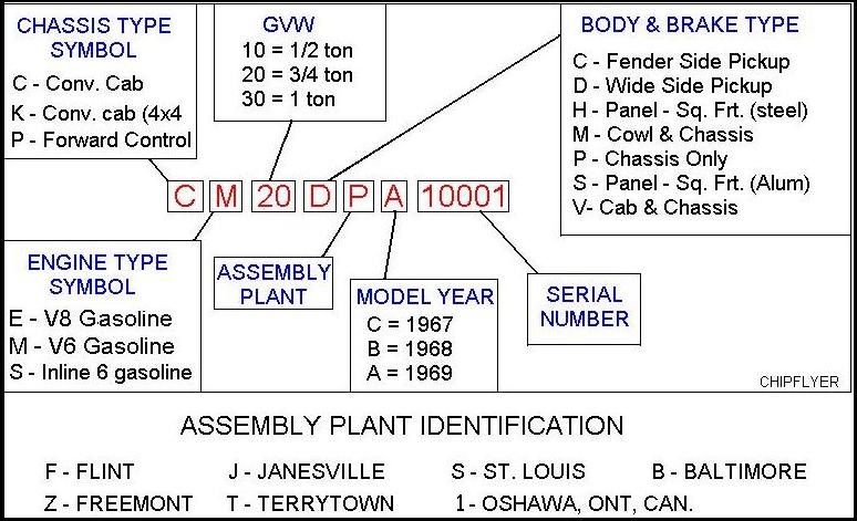 All 1967 through 1972 Chevrolet 10 thruough 30 series trucks are identified by this model designation system. It consists of
